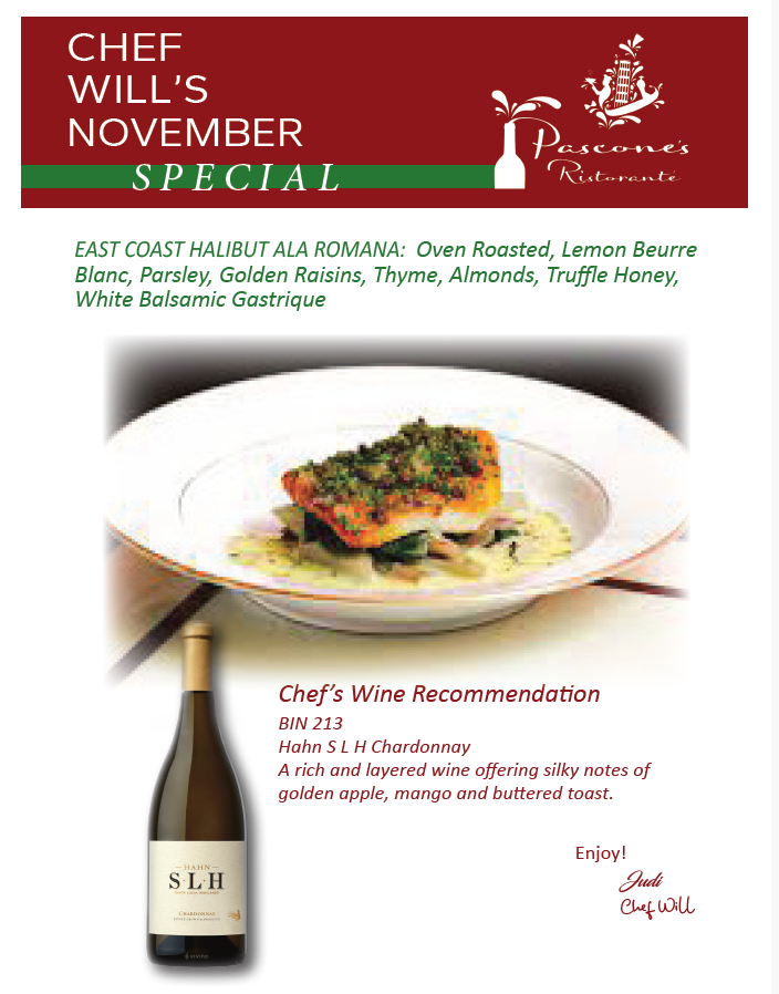Oven Roasted, Lemon Beurre Blanc, Parsley, Golden Raisins, Thyme, Almonds, Truffle Honey, White Balsamic Gastrique